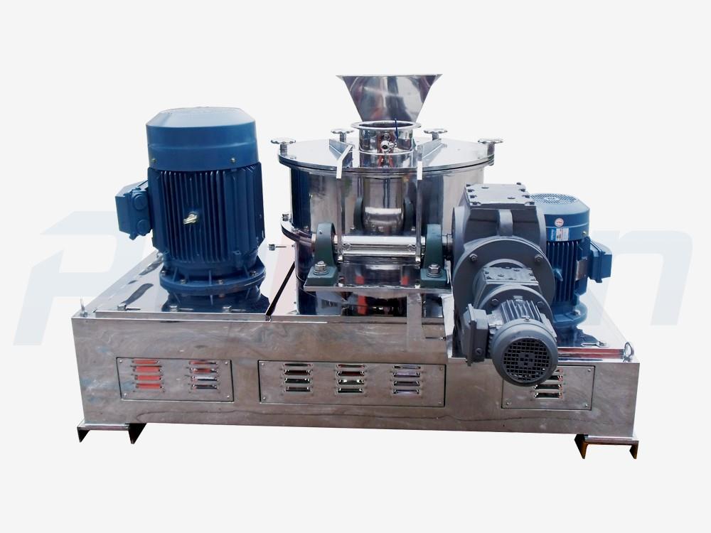 產品簡介: 雙軸機械粉碎機工作運轉中物料由加料系統均勻的送入粉碎室受到高速旋轉的粉碎盤的強烈沖擊,同時受到離心力的作用,與粉碎齒圈發生碰撞,受到剪切、摩擦、碰撞等多種綜合力的作用,使物料粉碎,被粉碎的物料隨氣流運動到分級區,通過變頻調節的分級輪,對粗細物料進…